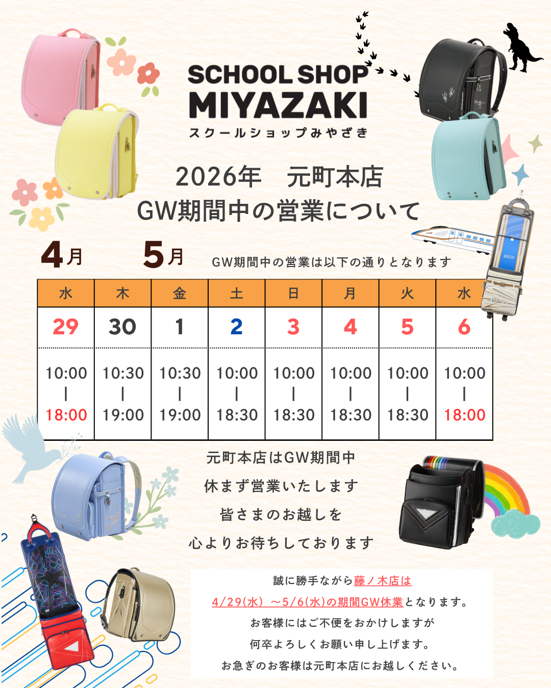 ランドセルの販売は4/11(土)から!