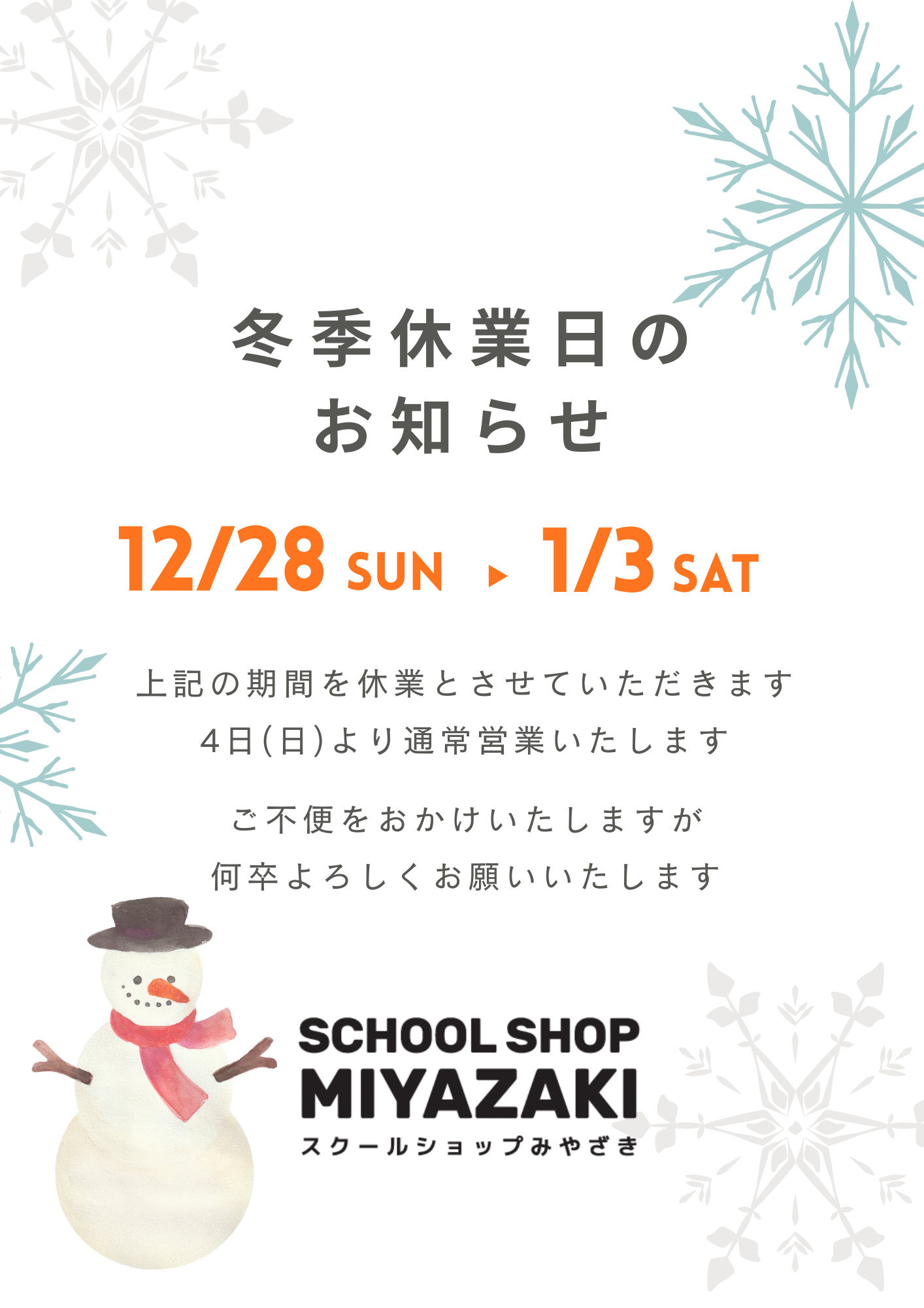 冬季休業日のお知らせ
